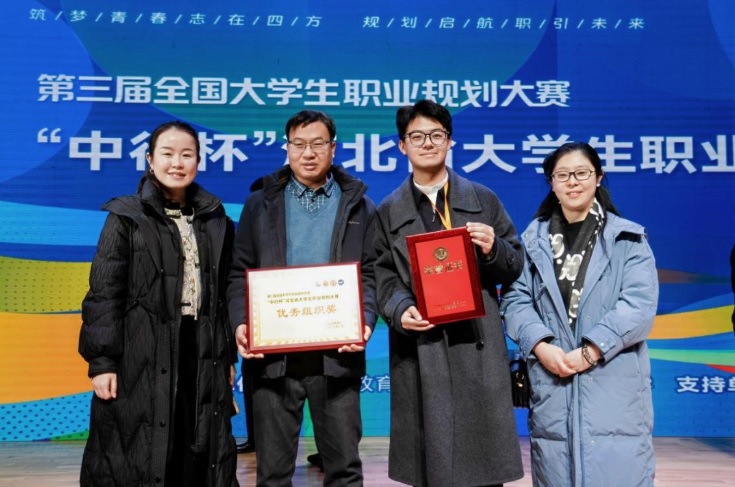 1月19日,第三届全国大学生职业规划大赛河北省赛决赛在燕山大学圆满落幕。我校教师教育学院小学教育专业谷博树同学在高教组就业赛道的激烈角逐中脱颖而出,以全省本科第六名的优异成绩斩获河北省金奖,学校获省赛“优秀组织奖”。