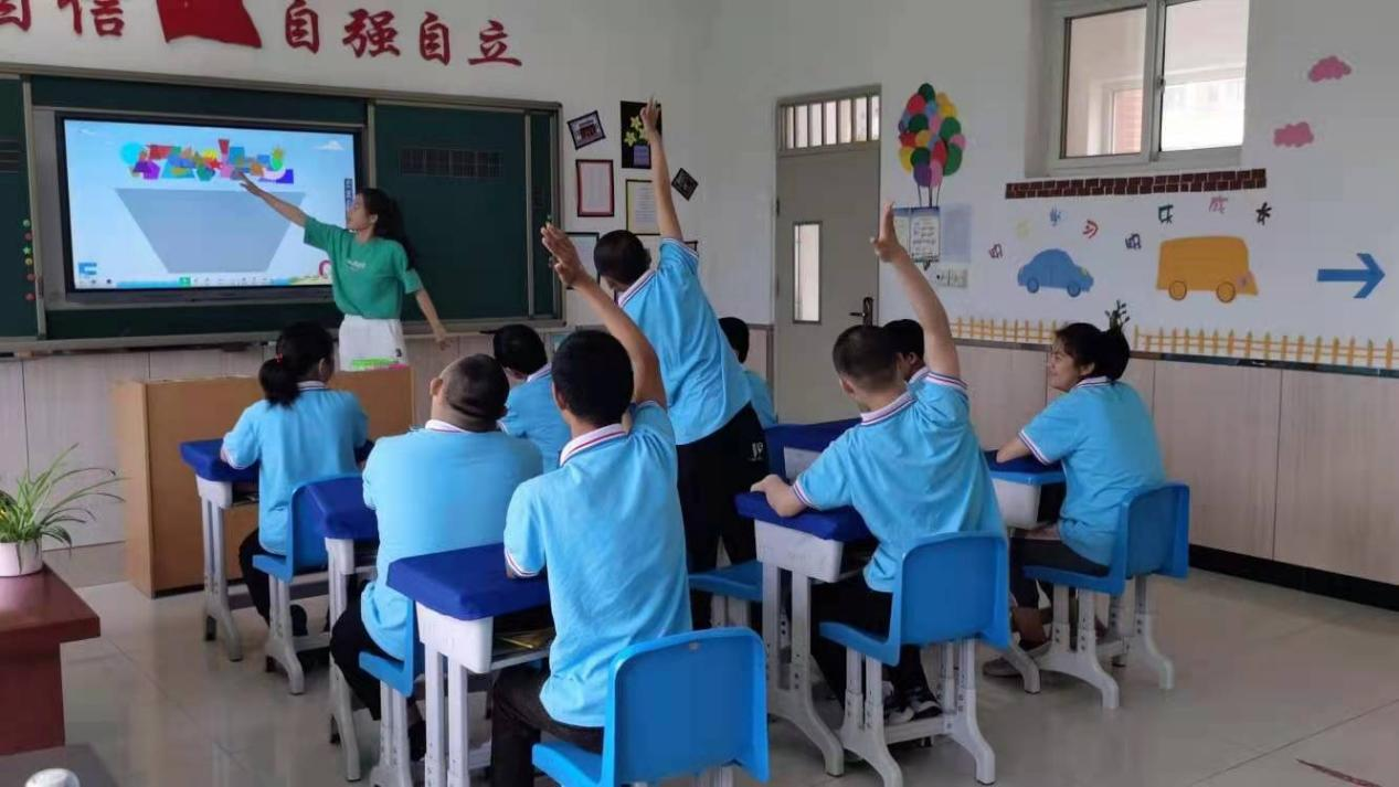 图4:2018级学生在平山县特殊教育学校上绘画与手工课